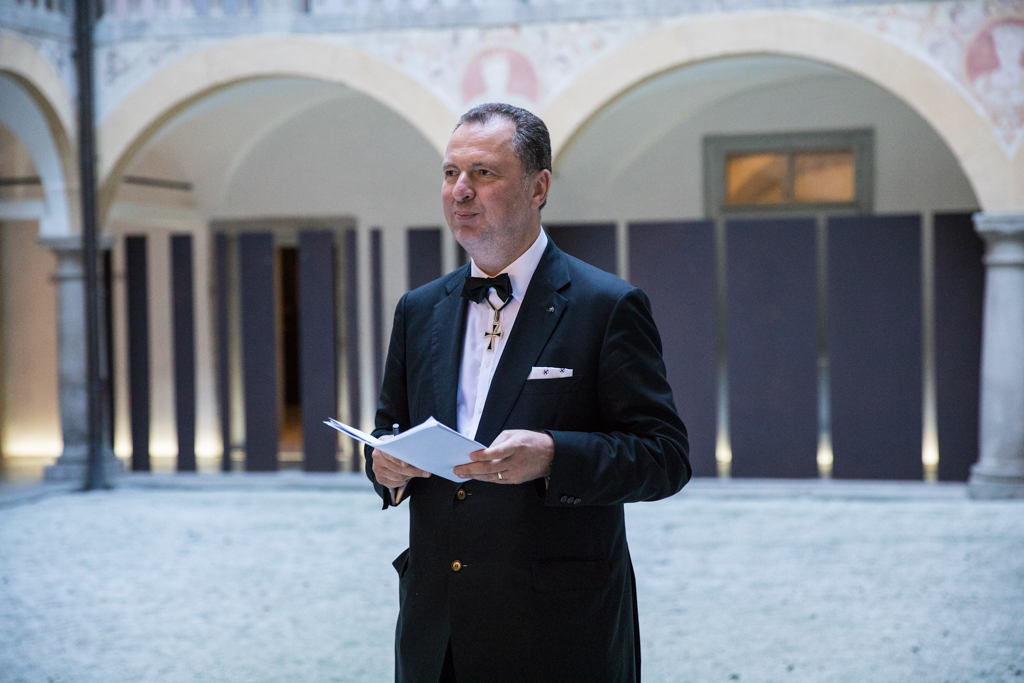 Zuvor konnte P. Ewald Volgger OT Hochmeister Bruno bereits ein erstes Vorwegexemplar des Werkes „Nekrologium. Martyrologium des Deutschen Ordens“ überreichen. Er betonte dabei, dass die Zusammenstellung dem respektvollen Gedenken der Opfer dient und vor allem die jungen Menschen nicht vergessen lassen soll, wohin die Missachtung der menschlichen Würde und Freiheit führt. Die Heilige Schrift lehrt uns bereits, die Not und das Schicksal der biblischen Menschen nicht zu vergessen, um das Wirken Gottes nicht aus dem Auge zu verlieren.