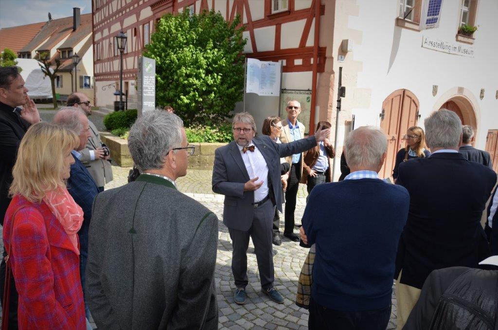 Die erste Station bildete das beschauliche Städtchen Wolframs-Eschenbach, seit 1253 Sitz einer Kommende des Deutschen Ordens und ab dem 14. Jahrhundert Teil der Komturei Nürnberg.  Confrater Oskar Geidner, Stadtheimatpfleger und Museumsleiter führtein die Geschichte der Stadt ein.
