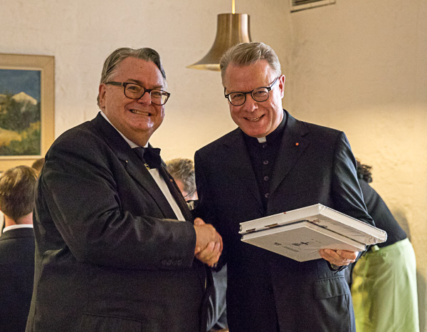 Nach einer Kirchenführung begab man sich für Vorträge in den Spiegelsaal des fürstbischöflichen Palais. Dabei war auch Landrat Knapp als Hausherr zugegen. Dabei bestand auch die Möglichkeit, S.E. Bischof Gregor Maria Hanke zu treffen, der mit vielen Familiaren persönlich bekannt ist. Die Vorträge hatte Prälat Dr. Kühn zum Rechtlichen des Vatikans übernommen und passend für dieses Jahr Domvikar Dr. Marco Benini zur Kontroverse von Eck und Luther.