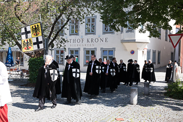 Bei strahlemdem Sonnenschein begingen die drei bayerischen Komtureien „Isar, Lech und Donau“, „An der Donau“ sowie „Franken“ am 8. Juli 2017 ihren alle zwei Jahre stattfindenden Ordenstag in Eichstätt. Dazu waren 70 Teilnehmer angereist, auch S. E. Hochmeister Generalabt Dr. Bruno Platter OT. Bereits am Vortag hatte Hochmeister Dr. Platter bei der Männerwallfahrt zum Hl. Willibald im Eichstätter Dom conzelebriert.