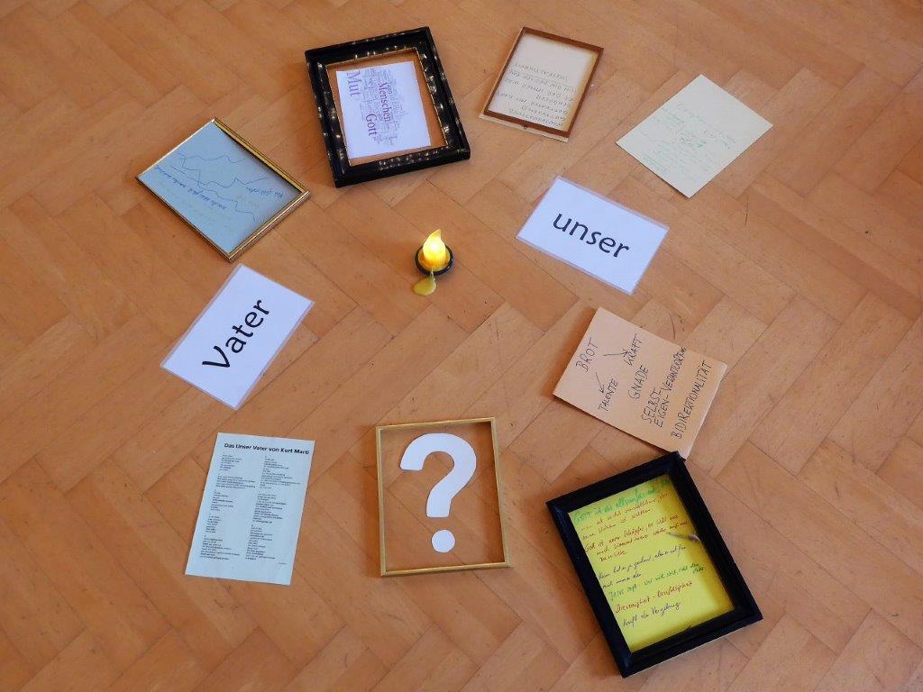 Das „Vater unser“ in den beiden synoptischen Evangelien von Matthäus und Lukas stellt eine zentrale Botschaft dar, in der um das Kommen des Gottesreiches und um die rechte Erfüllung des göttlichen Willens auch im gegenseitigen Vergeben gebetet wird. Das „Vater unser“ ist formal und inhaltlich eindeutig ein Bittgebet. Wer hatte die größte Bedeutung für meinen christlichen Glauben, wie häufig wurde in meinem Elternhaus gemeinsam gebetet und wie schaut mein Gebetsschatz aus, waren die Fragestellungen des Eingangsimpulses. Danach ging es um die Fragen: wer ist Gott für mich und wie können wir uns Gott vorstellen. In weiterer Folge wurden Stationen in der Gumpoldskirchner Deutschordenskirche gestaltet, die sich mit dem Gebet im Besonderem beschäftigen, aber auch mit dem Namen Gottes im Islam – 99 Namen, die seinen Eigenschaften entsprechen und mit dem Lobpreis Gottes, einem Gebet von Franz von Assisi.